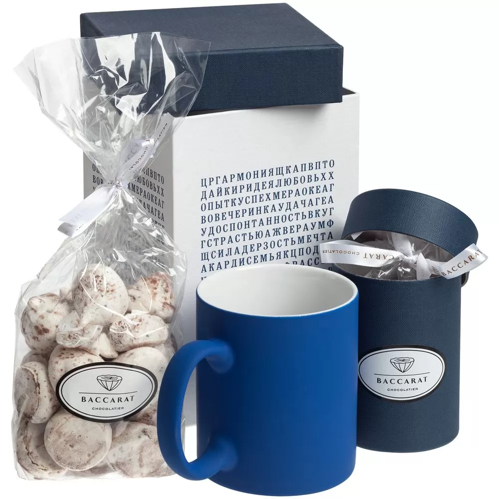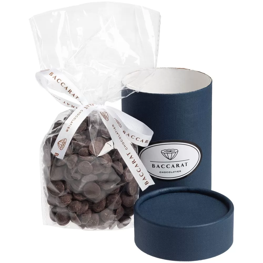 - горячий шоколад фирмы Baccarat в форме дропсов (55 % какао) в индивидуальном пакете и в тубусе синего цвета, вес 150 г;