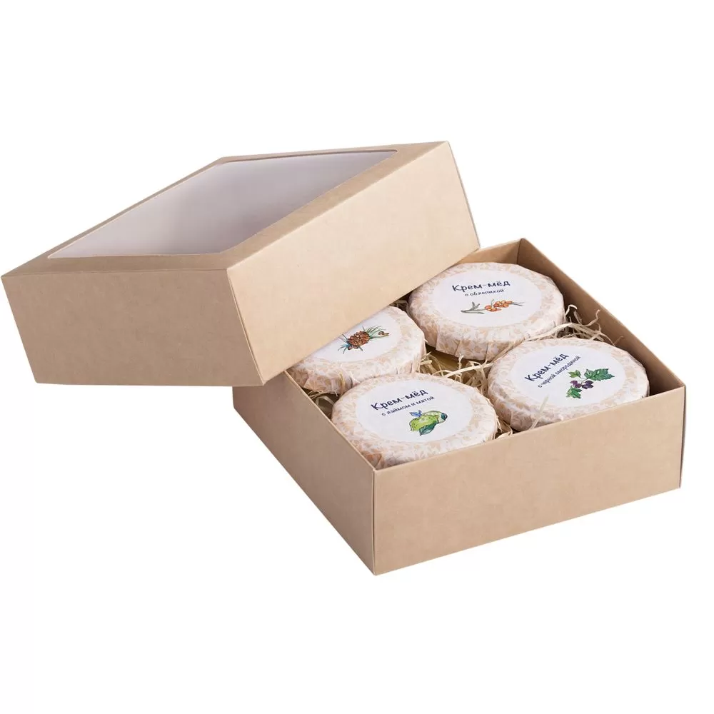 Набор упакован в изящную коробку из плотного картона с окошком.
