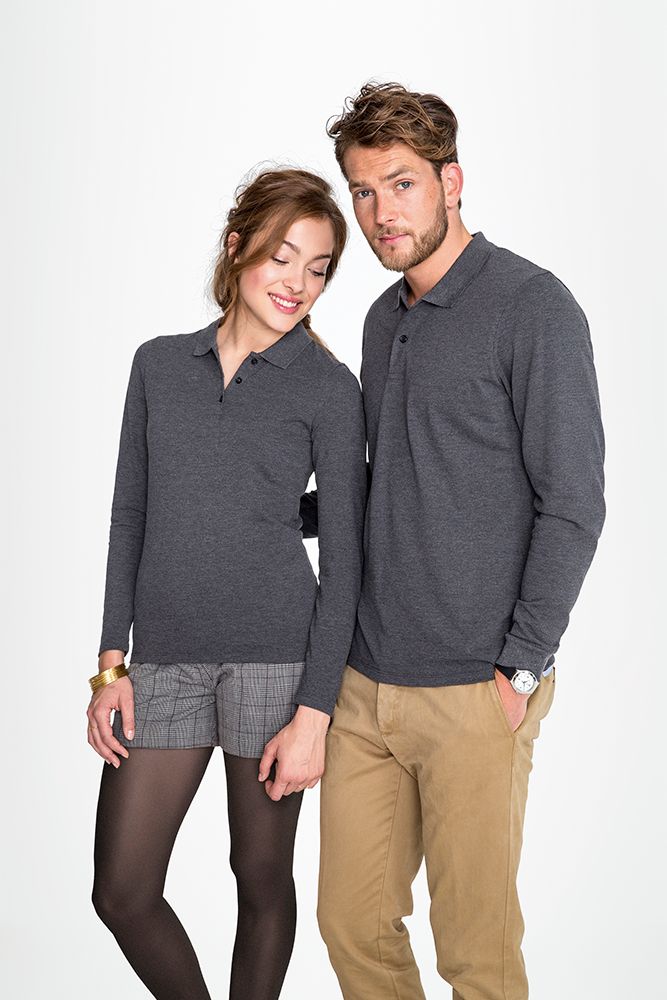 Рубашка поло мужская с длинным рукавом Perfect LSL Men, серый меланж