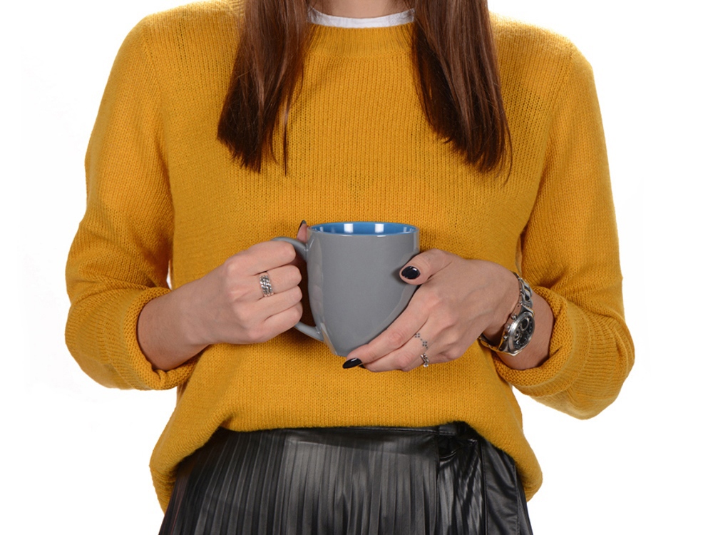 Кружка выполнена из керамики, её удобно держать в руке за счет большой ручки. Большой объём позволит наслаждаться любимым напитком в течение долгого времени.