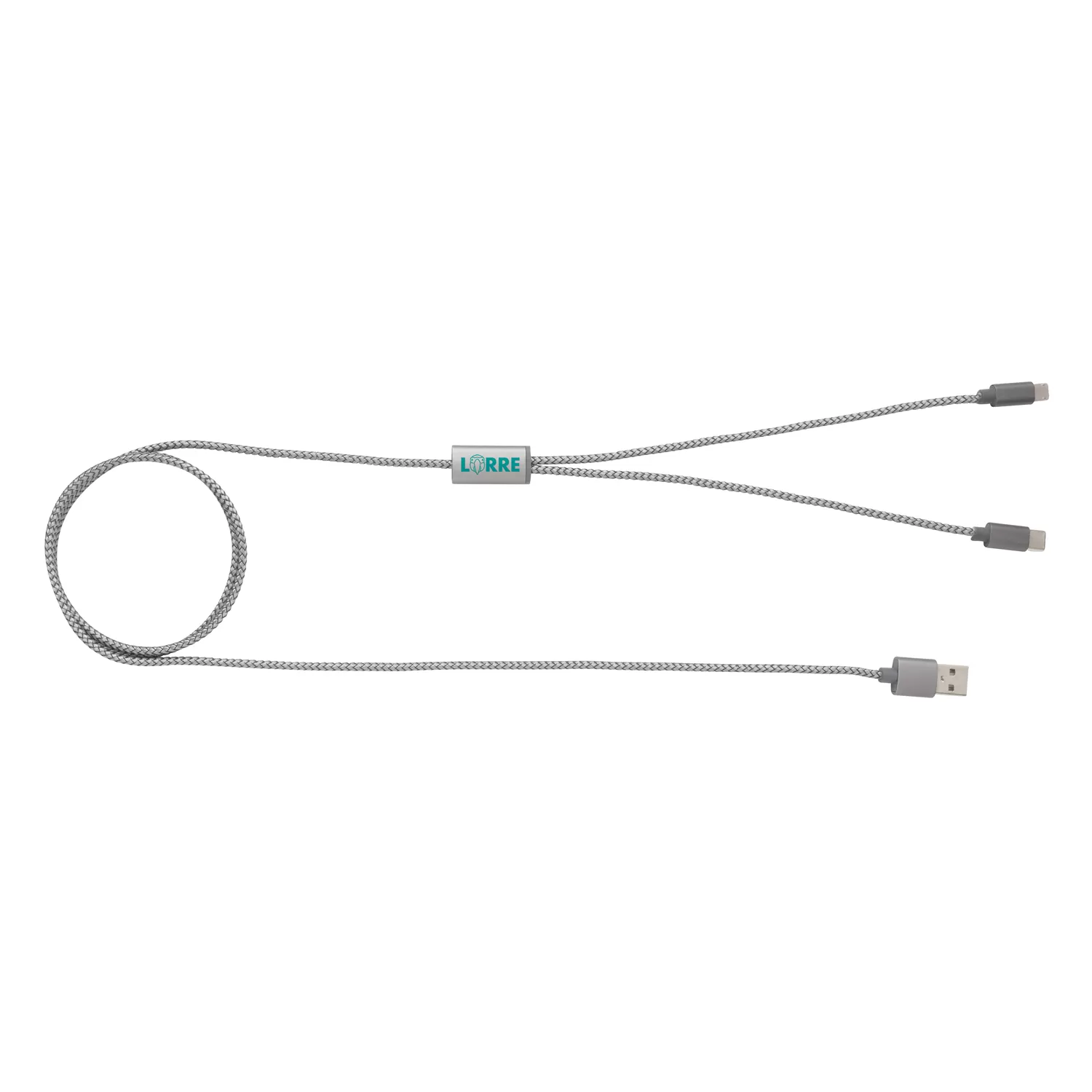 Плетеный кабель превосходного качества 3-в-1. В нем предусмотрены три выхода: Type C и комбинированный разъем - для устройств на платформе iOS и на платформе Android (micro USB). Сам кабель изготовлен из плетеного нейлонового материала, разъемы - из прочного алюминия. Подходит для зарядки устройств. Длина – 120 см.