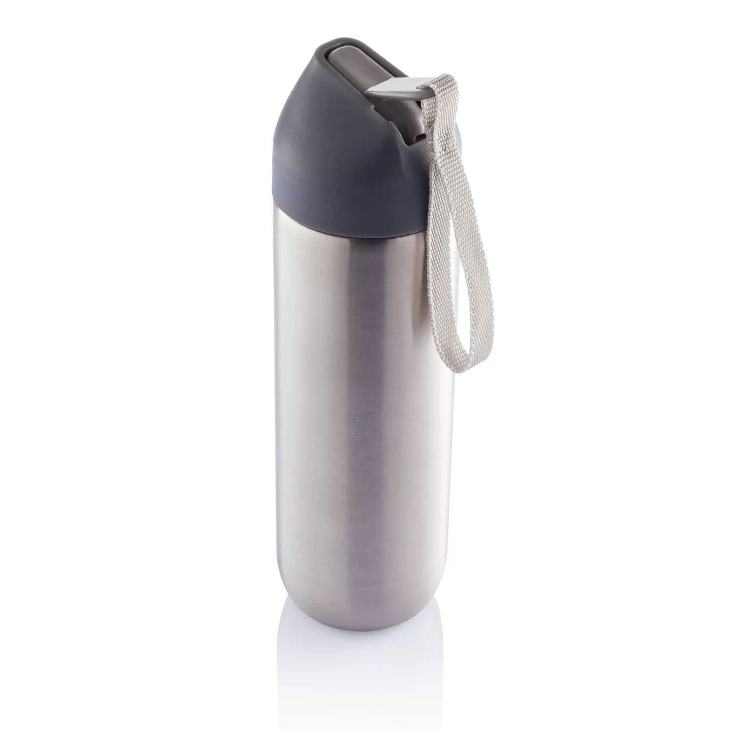 Металлическая бутылка для воды Neva - это новый шаг в борьбе с одноразовыми пластиковыми бутылками, ведь ее преимущества перед ними слишком очевидны. Бутылка объемом 500 мл изготовлена из 304 нержавеющей стали. Продуманный тканевый ремешок сочетает в себе сразу две функции: с ним вы с удобством можете брать бутылку с собой, куда бы вы ни пошли, а также он позволяет открыть бутылку и получить доступ к трубочке за считанные секунды. Зарегистрированный дизайн®.