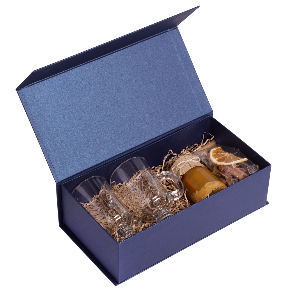 Коробка изготовлена из переплетного картона, кашированного дизайнерской бумагой Galaxy Metallic, с крышкой на магните.
