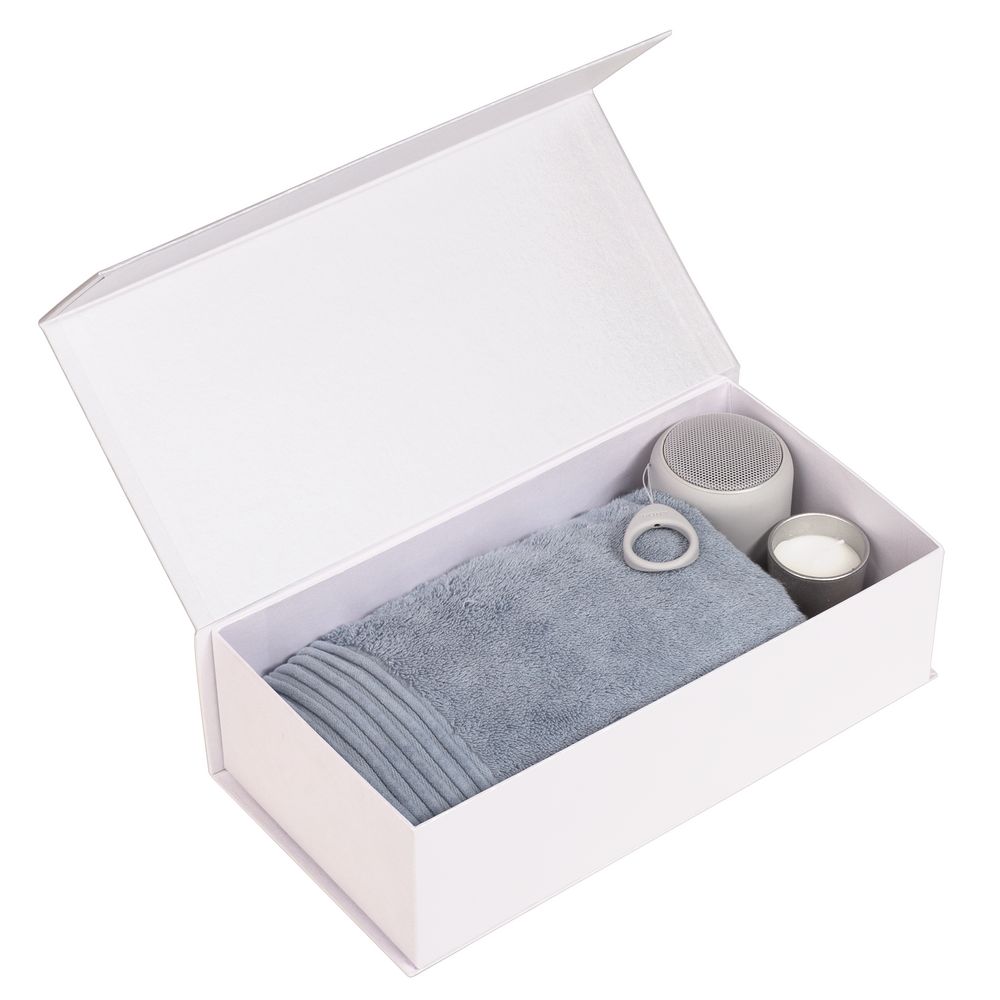 Коробка изготовлена из переплетного картона, кашированного дизайнерской бумагой Majestic, с крышкой на магните.