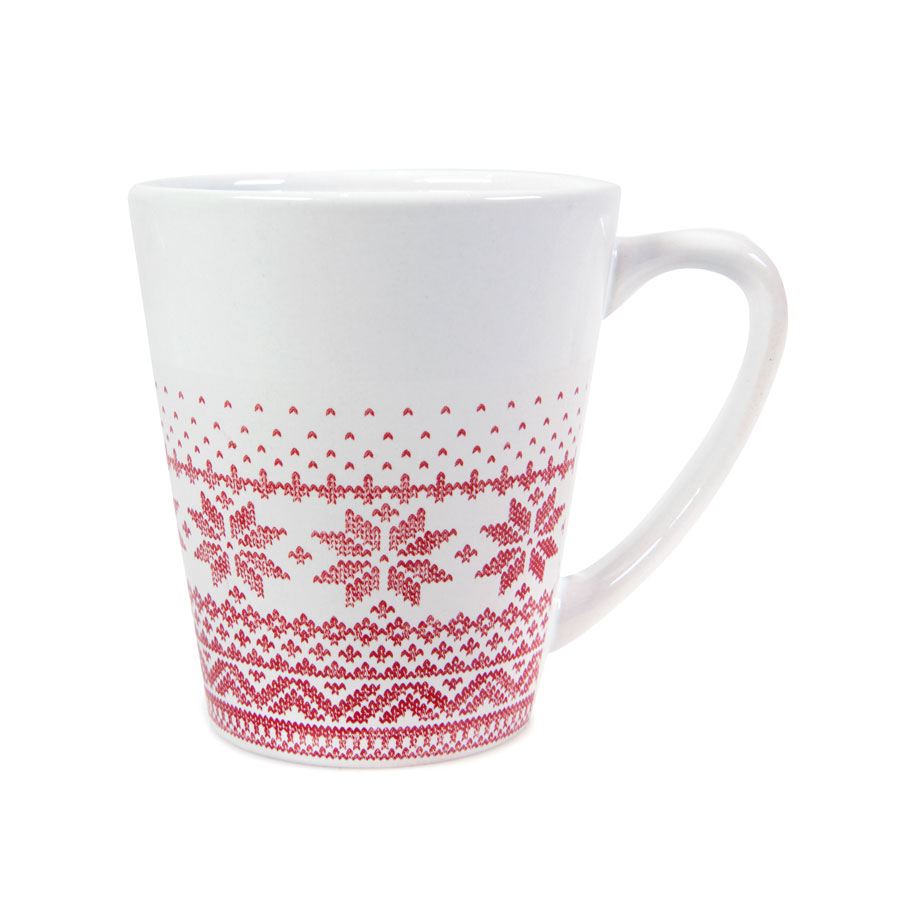 Кружка с теплым и уютным узором, совсем как на вязаном свитере, отлично подойдет для подарка в холодное время года. Красно-белый этнический рисунок превратит ее в стильный предмет интерьера или офисную вещицу, которая сделает утренний кофе еще вкуснее. А строгий, но четкий орнамент выгодно выделит кружку из числа других пестрых кружек коллег.