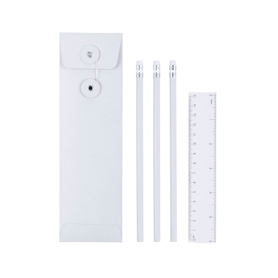 Набор 'Desk':карандаш простой с ластиком (3шт.) и линейка в чехле, белый