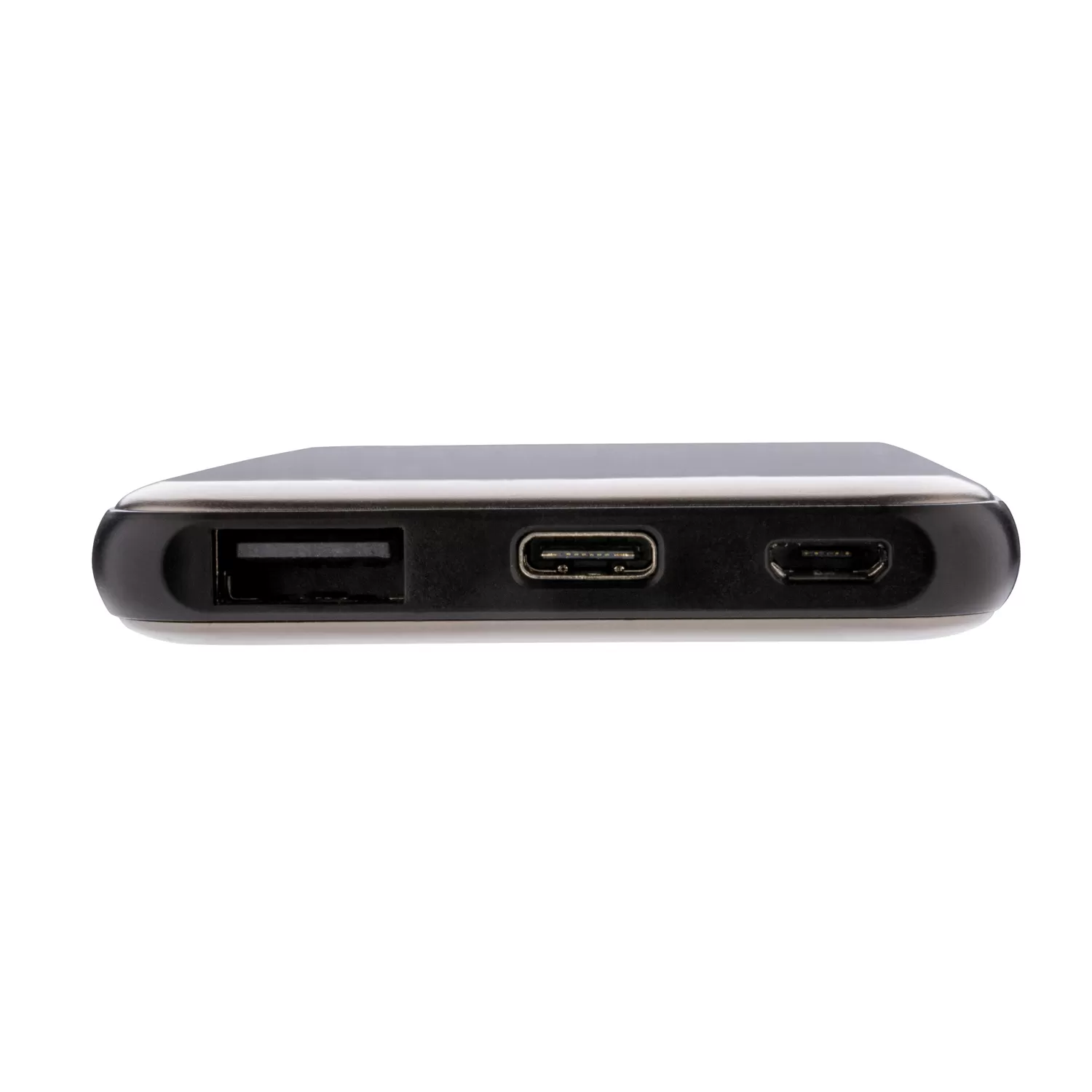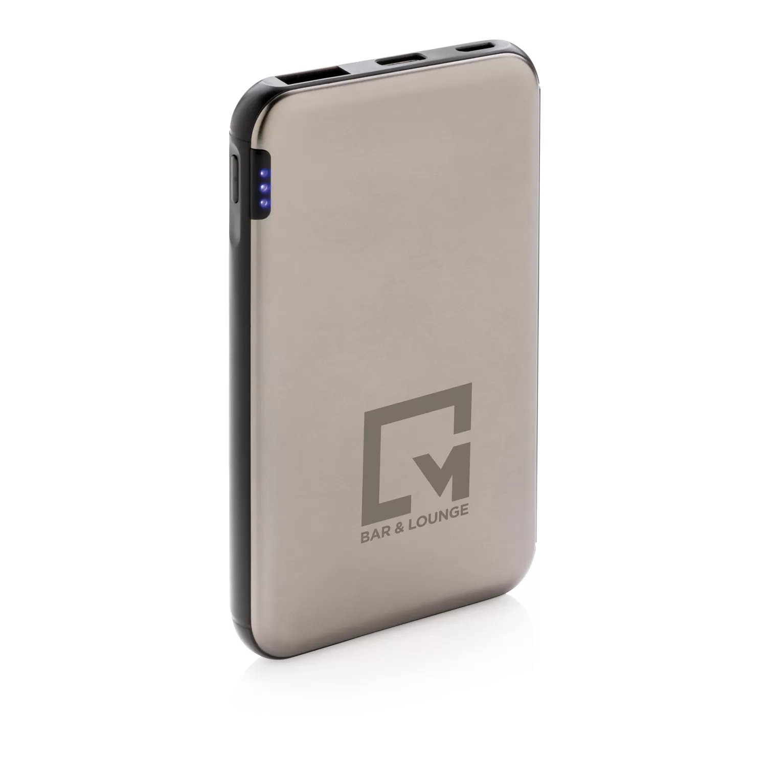 Ультра-тонкий внешний аккумулятор емкостью 5 000 мАч изготовлен из высококачественного алюминиевого сплава способен, благодаря своему уникальному дизайну, с легкостью уместиться в кармане. Энергии полностью заряженного литий-полимерного аккумулятора высокой плотности хватит, чтобы зарядить ваш смартфон до двух раз. Удобные световые индикаторы отображают уровень заряда, напоминая о необходимости подзарядить устройство. Напряжение как на входе, так и на выходе составляет 5В/2,1A.