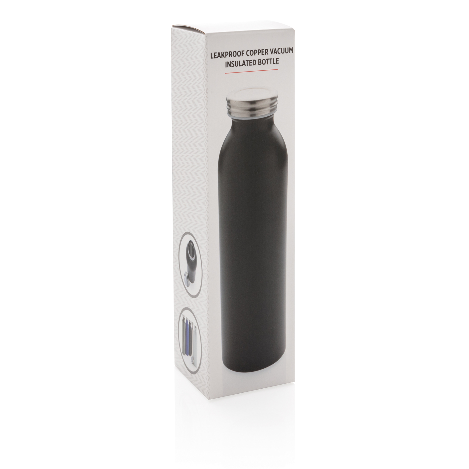 Ищете бутылку для ежедневного использования? Тогда эта бутылка с вакуумной медной изоляцией создана именно для вас. Бутылка сохранит ваши напитки теплыми до 8 часов и прохладными до 24 часов. Крышка надежно защищена от протеканий. Форма бутылки идеально подойдет для нанесения логотипа. Объем: 600 мл