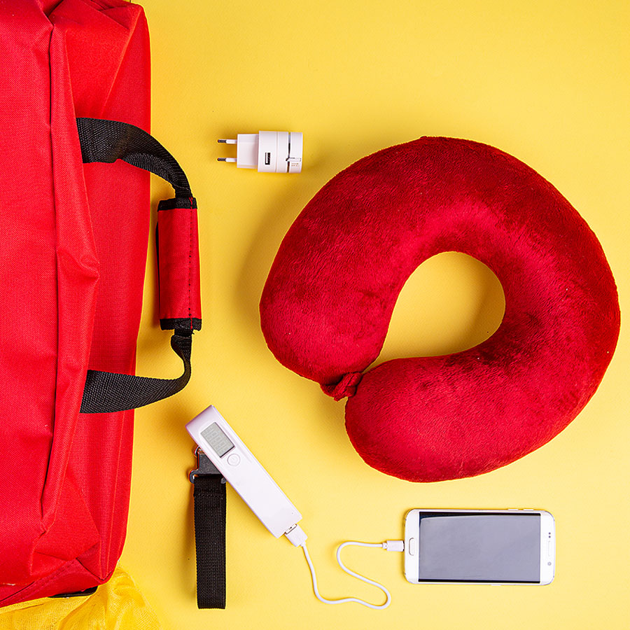 2) Подушка дорожная "SOFT", арт.62000/08. Материал: микрофибра, цвет красный. Съемный чехол.