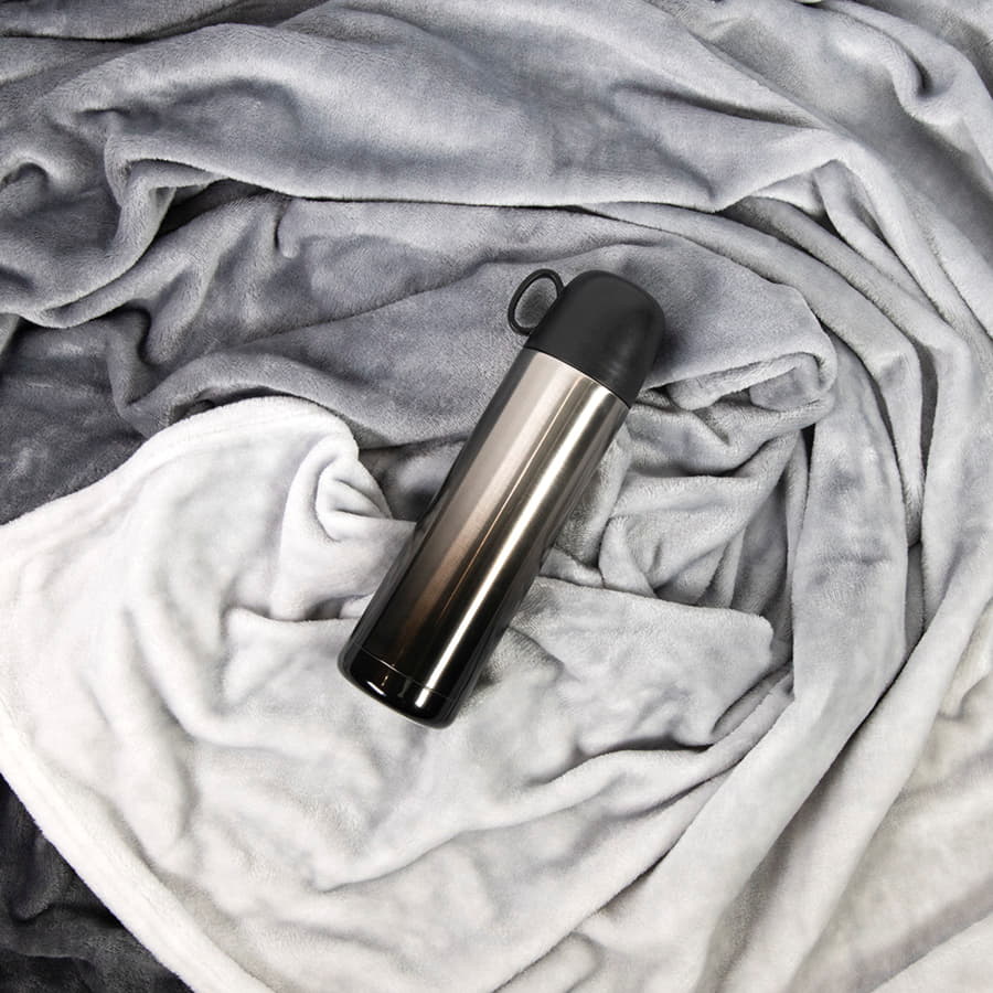 Плед окрашен градиентом - плавный переход от светло-серого к темно-серому оттенку.
