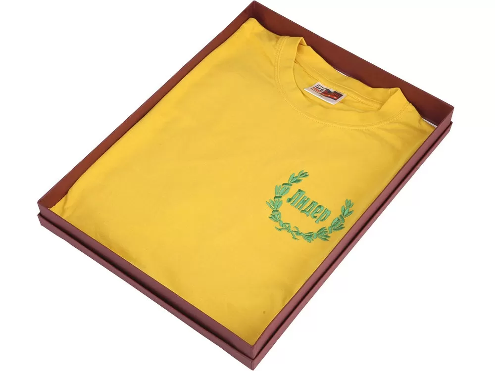 В набор входят: желтая майка с вышитыми лавровыми листьями и надписью Лидер