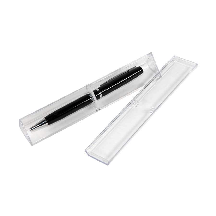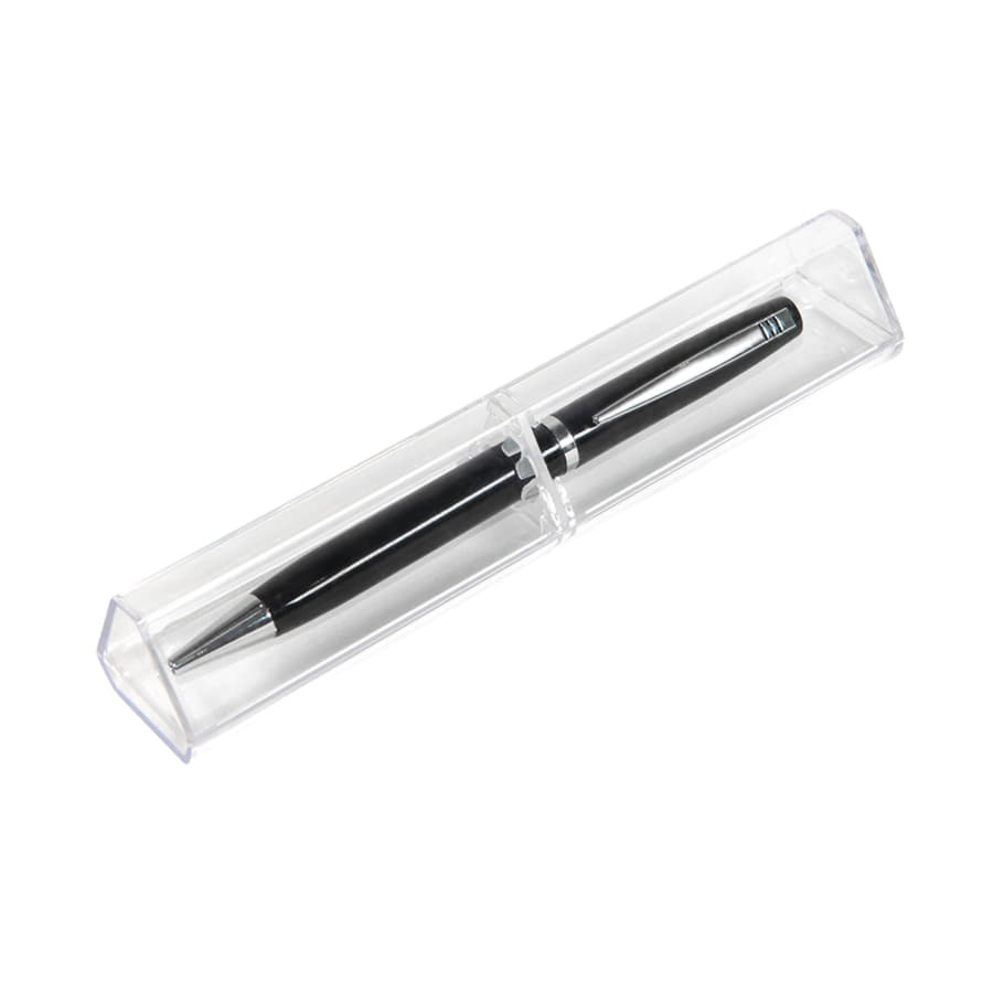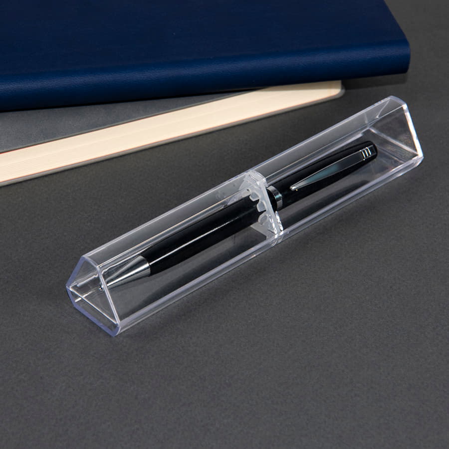 Пластиковый футляр треугольной формы с держателем для ручки.