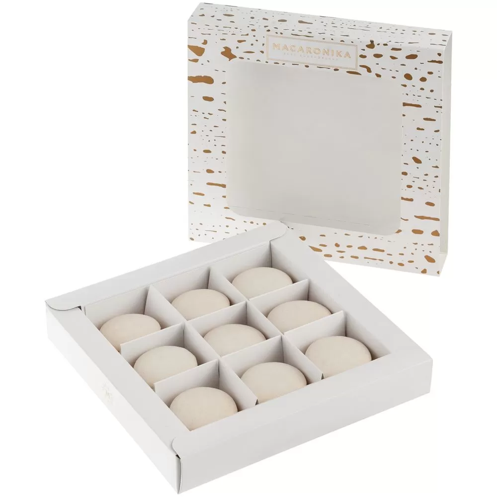 Набор из 9 пирожных макарон, в коробке с окошком