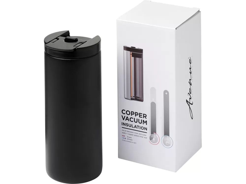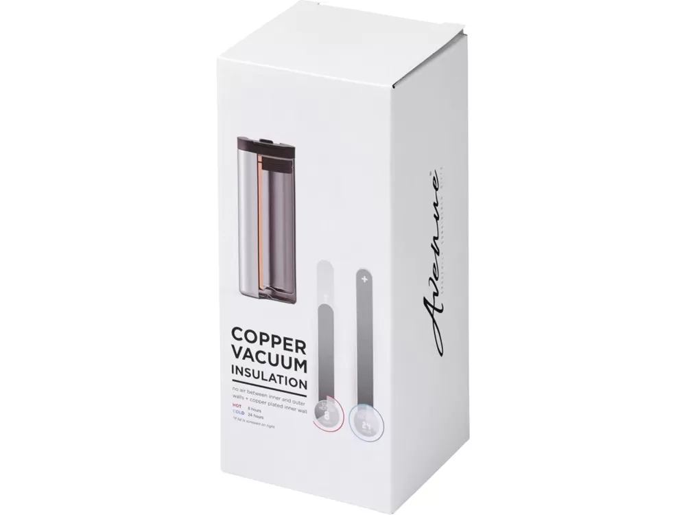 Вакуумный термостакан Lebou с медным покрытием 360 мл. Компактный и долговечный термостакан идеально подходит для работы и путешествий. Изготовлен из нержавеющей стали с двойными стенками и вакуумной, медной изоляцией, что позволяет сохранять температуру горячих напитков до 8 часов, а холодных — до 24 часов. Крышка имеет функцию блокировки. Кроме того, конструкция препятствует образованию конденсата на внешней стороне стакана. Объем — 360 мл. Представлена в подарочной коробке Avenue. Нержавеющая сталь, ПП-пластик.