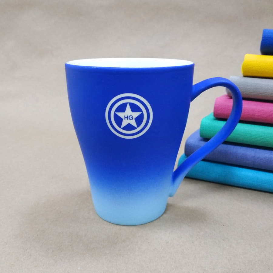Переход от насыщенного оттенка в основной части кружки к совсем светлому внизу, для более выгодного представления логотипа на темной части