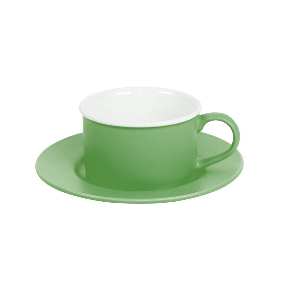 Нежный белый кант по верхнему краю дополняет ассоциацию с тающим мороженым, а блюдце с углублением не позволит чашке случайно соскользнуть.
