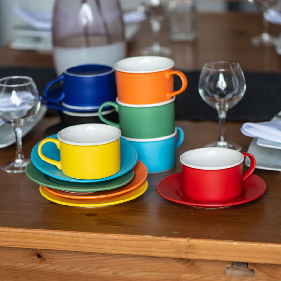 Эта чайная пара – яркий и стильный акцент любого офиса или дома. Ровная форма чашки с гладким матовым покрытием напоминает всеми любимый вафельный стаканчик с мороженым, отсюда и «сладкое» название комплекта – ICE CREAM.