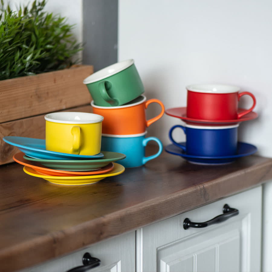 Нежный белый кант по верхнему краю дополняет ассоциацию с тающим мороженым, а блюдце с углублением не позволит чашке случайно соскользнуть.
