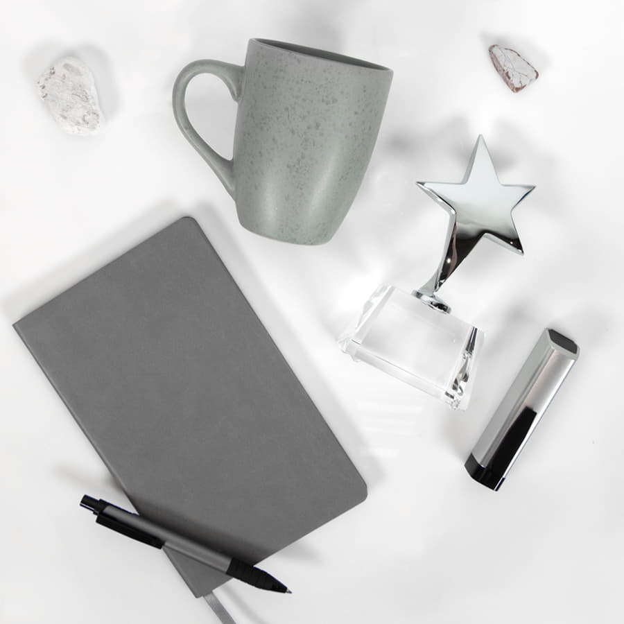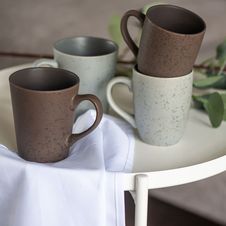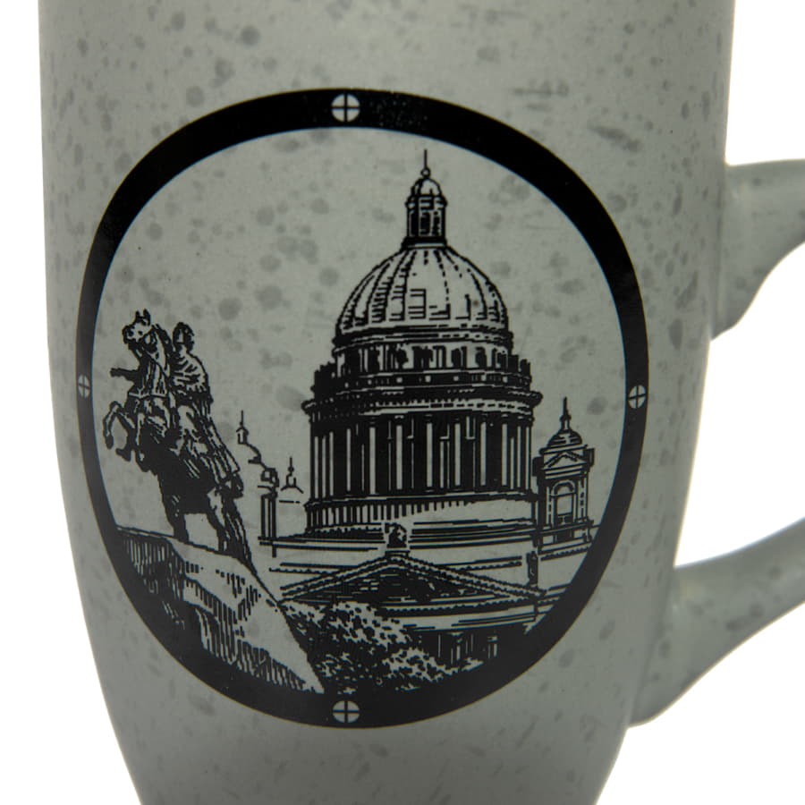 Рисунок покрытия кружки имитирует натуральный камень с небольшими вкраплениями.