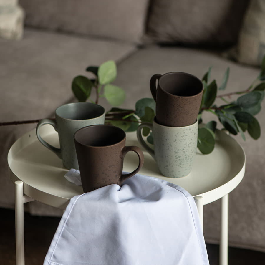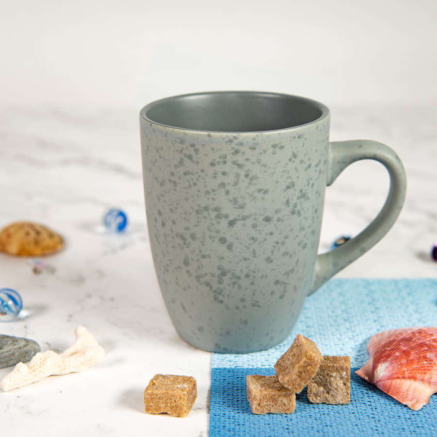 Рисунок покрытия кружки имитирует натуральный камень с небольшими вкраплениями.