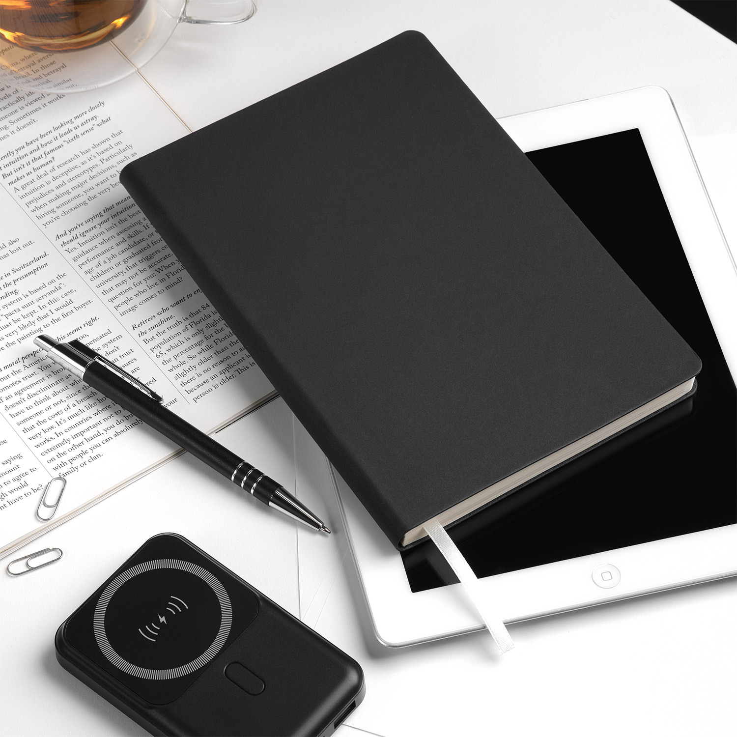 Строгий, официальный, функциональный. Недатированный ежедневник Portobello коллекции Star оценят любители современной классики. Гибкая обложка со скругленными уголками из качественной искусственной кожи (материал Moon River) с поверхностью Soft Touch. Поверхность матовая, с приятной шелковой однородной фактурой. Цвет – классический черный, насыщенный, плотный, припудренный. Форзац и нахзац матовые, кремового цвета. Страницы из гладкого кремового офсета, шелковистые, со скругленными уголками. Приятны руке и комфортны в работе. Срез матовый, в тон страниц. Одинарное атласное кремовое ляссе в тон бумажного блока. Имеет шелковистую поверхность с легким блеском. Ширина ляссе 6 мм. Изделие имеет сертификаты FSC, OEKO Tex, SA8000, ISO9001.Упаковка: нетБез упаковки (без стикера)