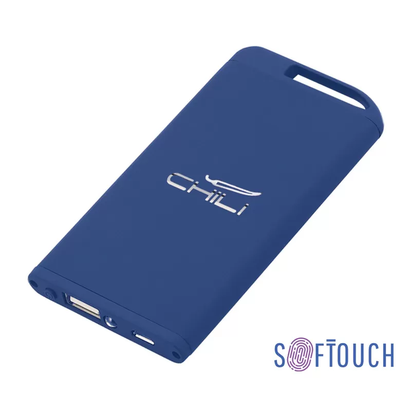 Зарядное устройство Theta с фонариком, 4000 mAh, покрытие soft touch, темно-синий