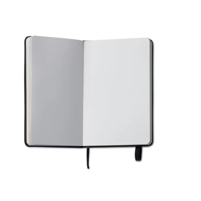Блокнот в твердом переплете на 96 нелинованных страниц с резинкой-застежкой.