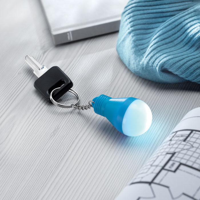 Пластиковый фонарь-брелок в виде лампочки. Батарейки включены
