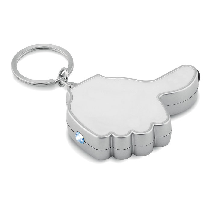 Брелок в форме руки со светодиодным фонариком и стилусом. Батарейки AG10 и CR1220 включены.