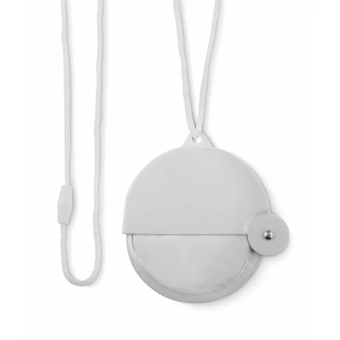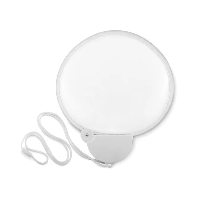 Складной веер из полиэстера в пластиковом пенале на шнурке.