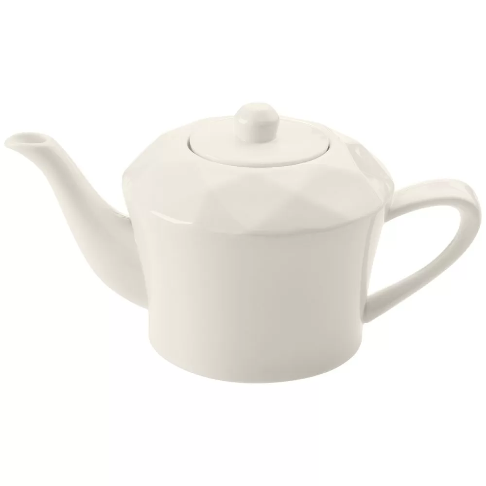 Линейка столовой посуды Diamante Bianco — настоящий бриллиант коллекции Altavolo. Структура и пропорции граней чайника в точности повторяют верхнюю часть бриллианта классической огранки — корону. Присмотритесь — и вы увидите, как играет свет на молочно-белом фарфоре.Емкость 600 мл.
