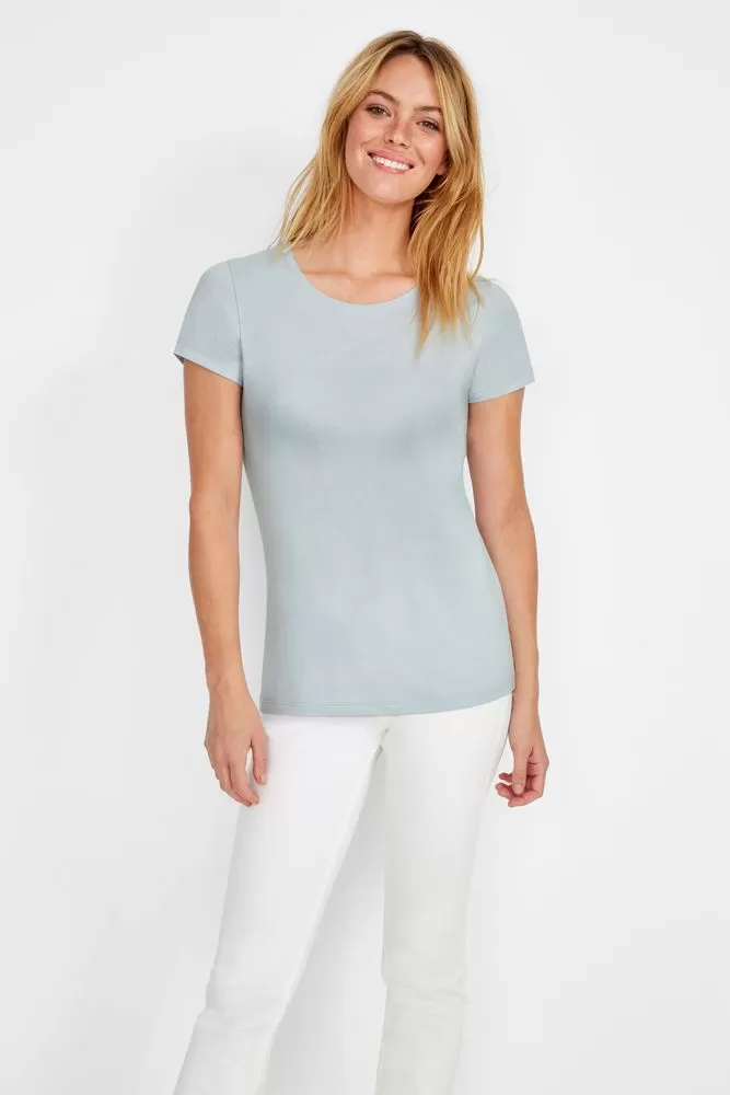 Женская облегающая футболка из джерси c боковыми швами и круглым вырезом.