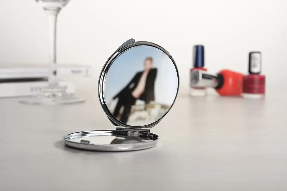 Двойное зеркальце: обычное и увеличивающее. В комплекте тканевый чехол.