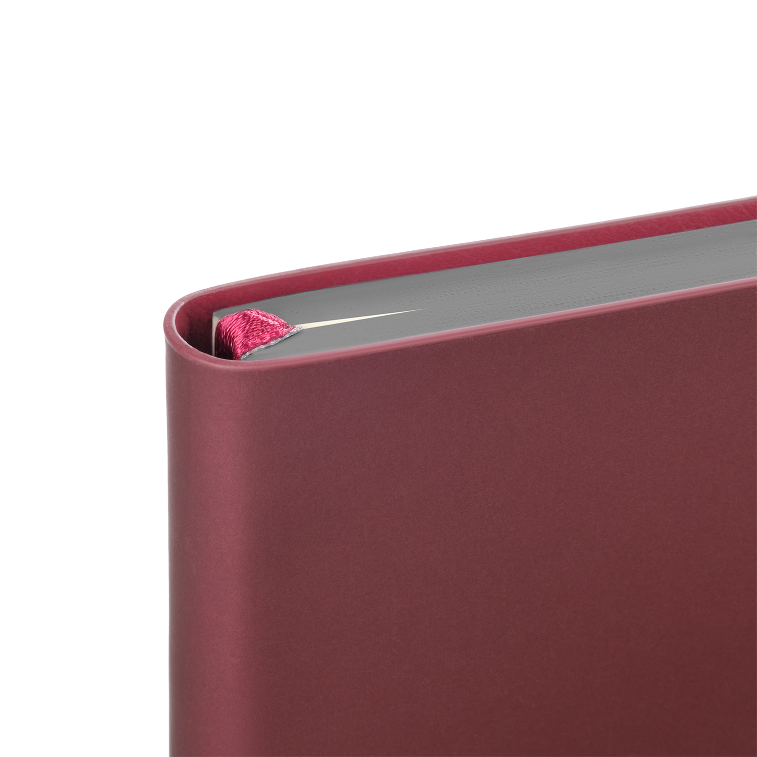 Недатированный ежедневник Portobello коллекции Moon River выполнен в приглушенном, мягком, романтическом настроении. Гибкая обложка из качественной искусственной кожи с поверхностью Soft Touch. Поверхность матовая, с приятной шелковой однородной фактурой. Бордовый цвет обложки глубокий, спокойный, припудренный. Является эксклюзивным для Portobello и не имеет аналогов. Форзац и нахзац матовые, бургундского цвета, в тон обложки. Страницы из гладкого светло-кремового офсета, шелковистые, со скругленными уголками. Приятны руке и комфортны в работе. Срез матовый, серый. Двойное атласное ляссе составлено из серой и бордовой лент. Имеет шелковистую поверхность с легким блеском. Упаковка: пластиковая коробка - есть