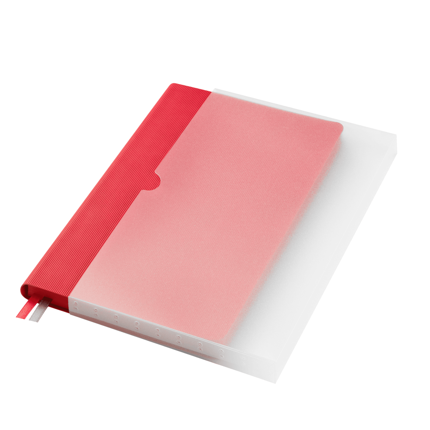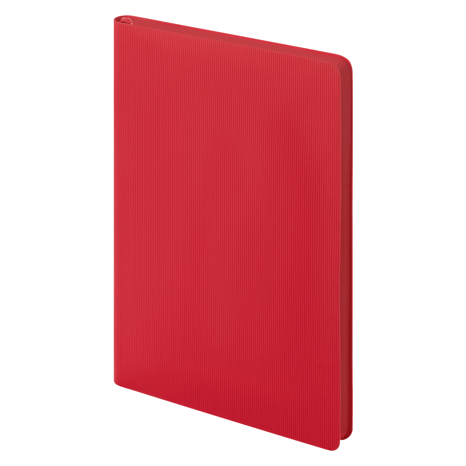 Дерзкий. Характерный. Запоминающийся. Недатированный ежедневник создан привлекать внимание и вызывать яркие эмоции. Гибкая матовая обложка со скругленными уголками выполнена из искусственной кожи, имитирующей покрытие в стиле Hi-Tech. Переплетный материал с вертикальным рифлением, бархатистый, со слегка прорезиненным эффектом. За счет интересной рельефной фактуры прослеживается игра цвета при перемене освещения. Цвет – насыщенный красный, плотный, комфортный, однородный. Создает необычный красивый контраст с матовыми форзацем и нахзацем серого цвета. Срез матовый, в тон обложки. Страницы со скругленными уголками приятного глазу теплого светло-кремового цвета. Выполнены из гладкого шелковистого офсета. Ежедневник дополнен двойным атласным ляссе из лент серого и красного цветов, имеющих глянцевый отлив.