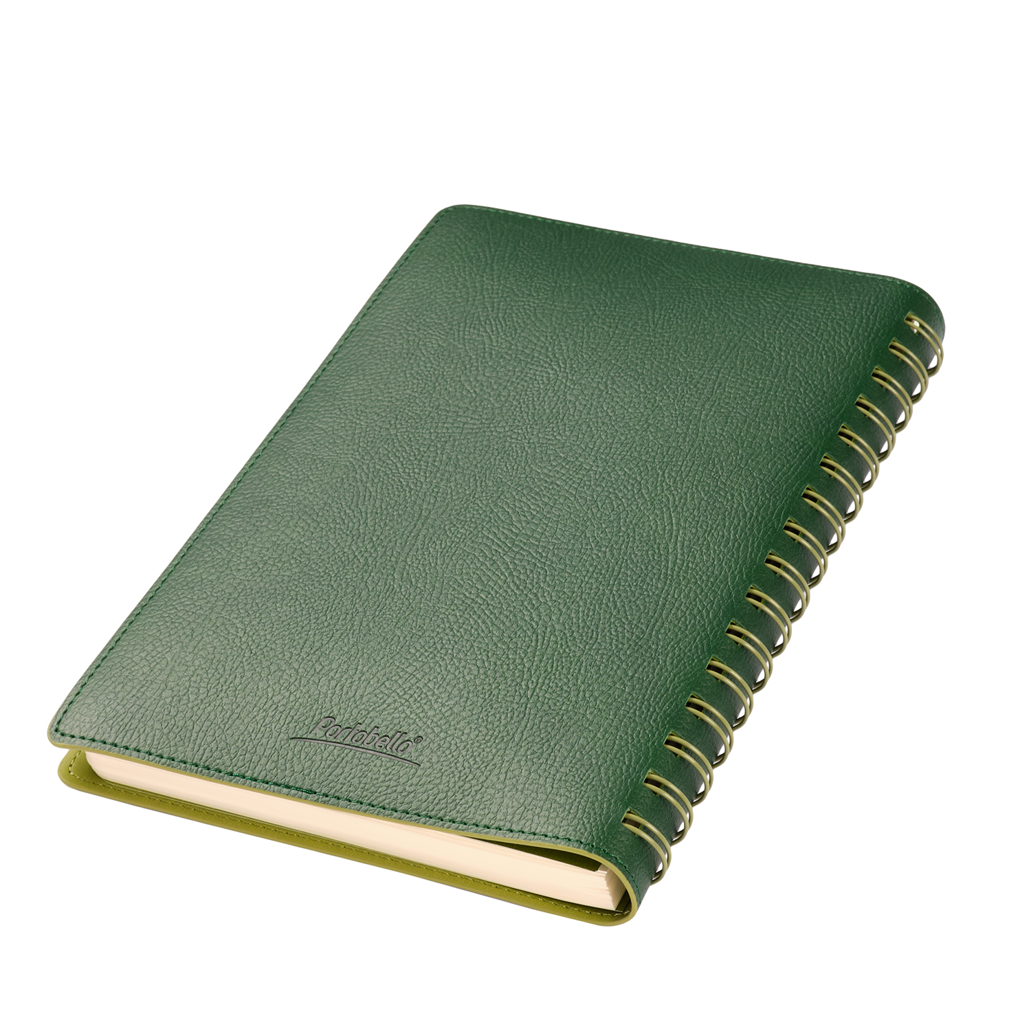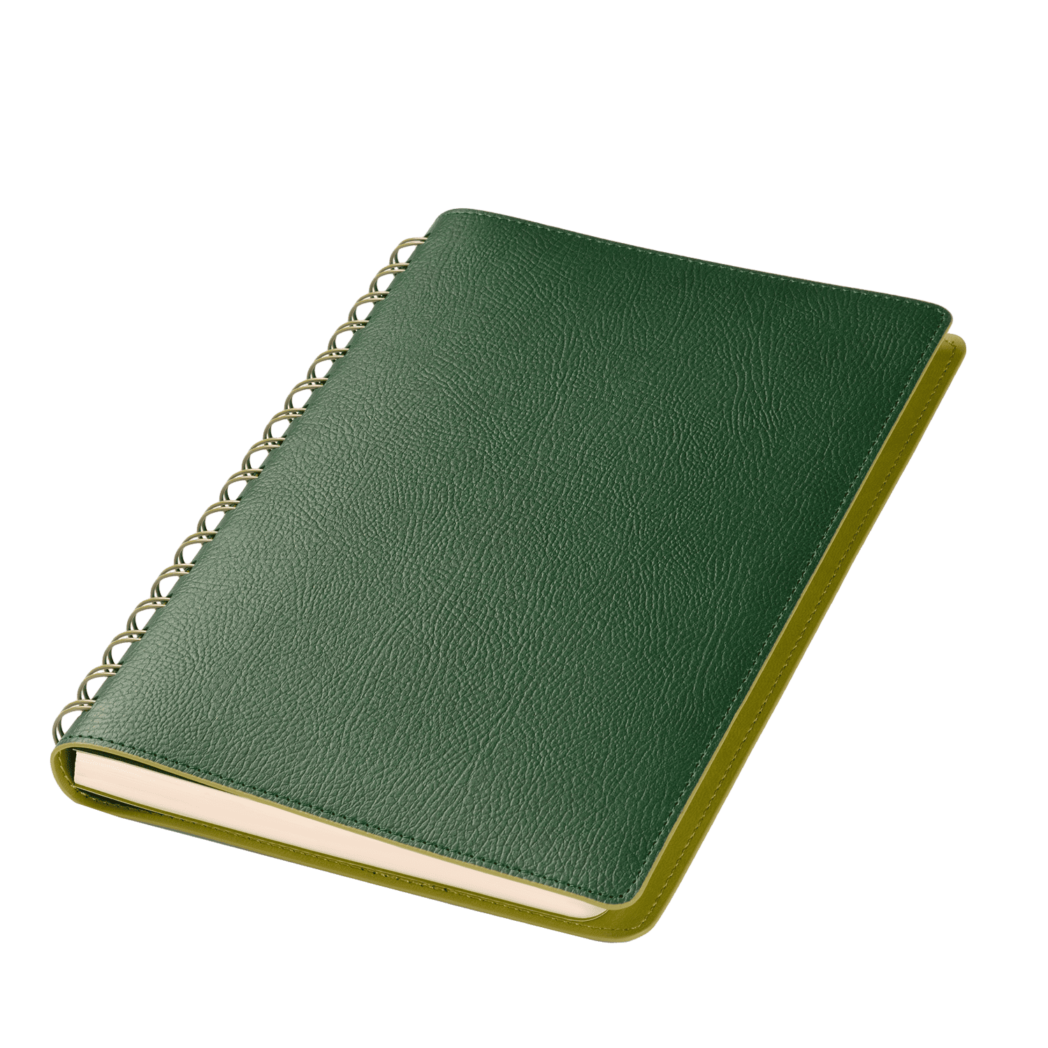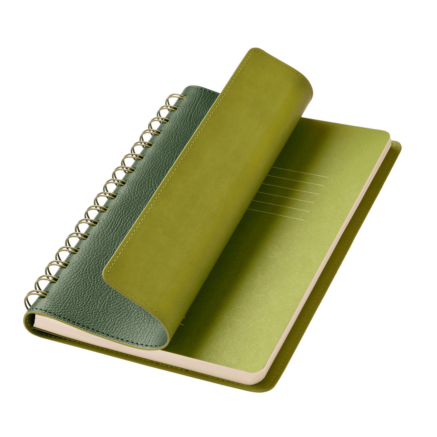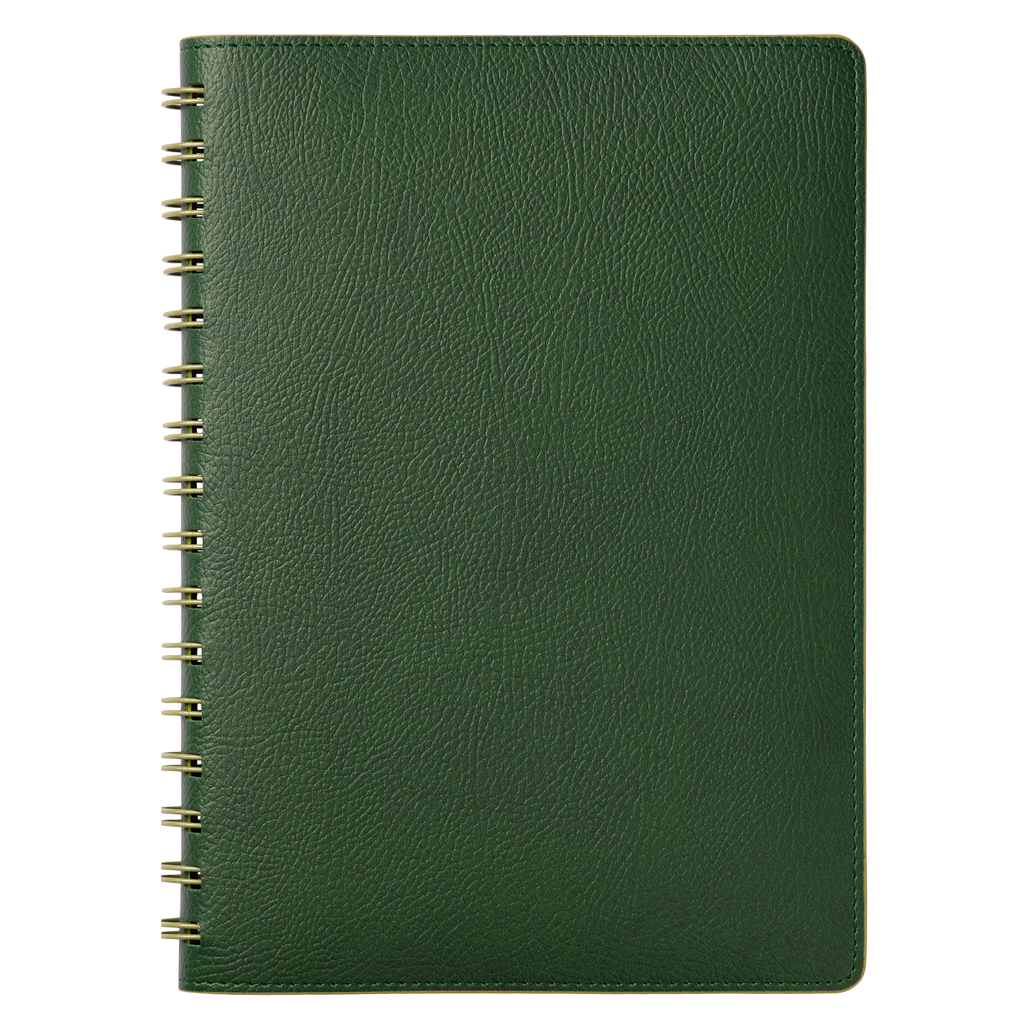 Недатированный ежедневник в гибкой обложке со скругленными уголками из искусственной кожи. Обложка выполнена из сшивки двух материалов. Внешний материал обложки матовый, с некрупным рельефом под натуральную кожу. Цвет – зеленый, приглушенный, однородный. Внутренний материал обложки – Latte – бархатистый, мелкозернистый, однородного яркого салатового цвета. По периметру обложки выполнена прошивка в тон. Форзац и нахзац контрастные, салатовые. Теплые кремовые страницы со скругленными уголками выполнены из гладкого шелковистого офсета. Срез матовый, в тон страниц. Ежедневник надежно скреплен полускрытой пружиной в цвет внутреннего материала обложки. Изделие комплектуется вкладышем с цветными стикерами и индивидуальной упаковкой.Упаковка: пластиковая коробка – есть