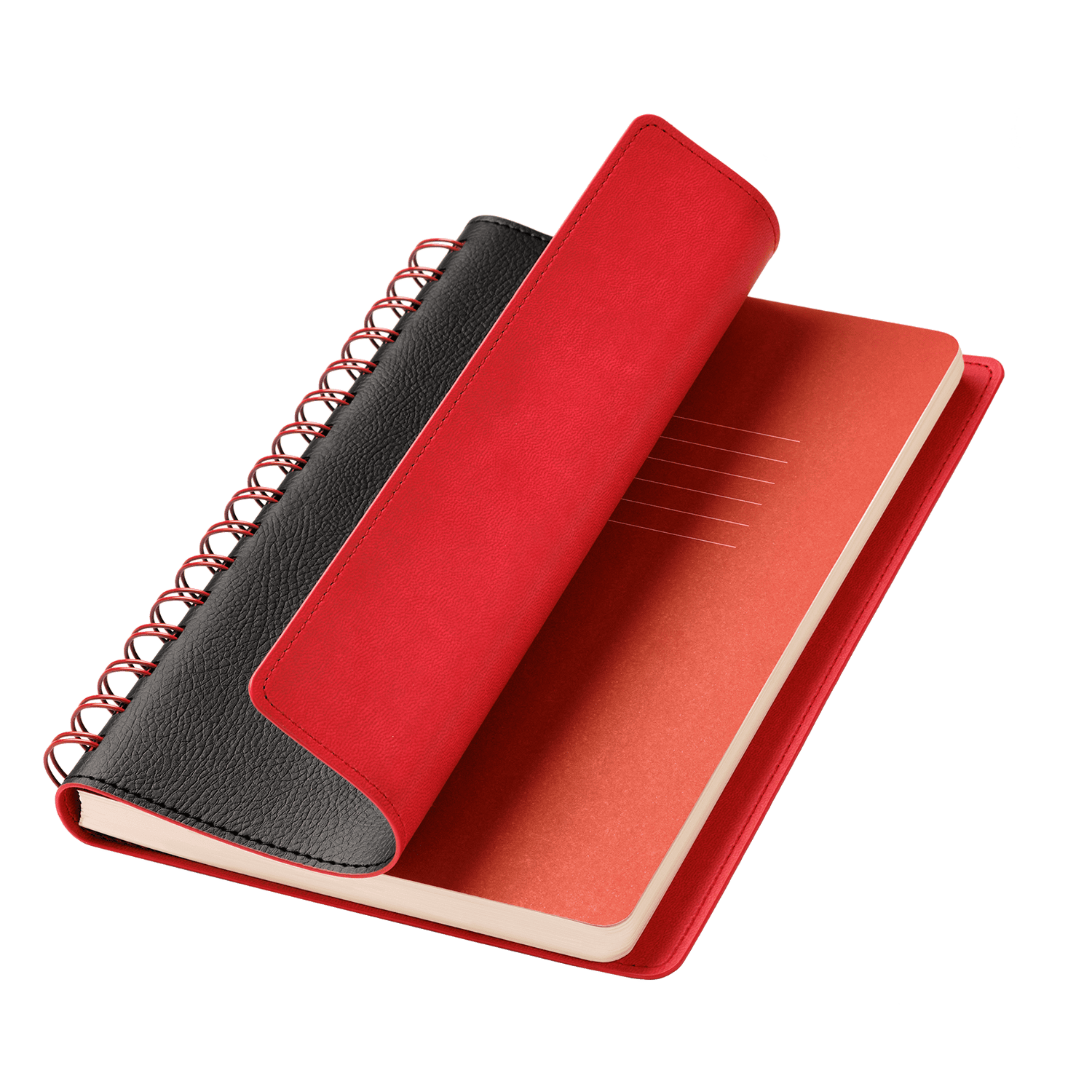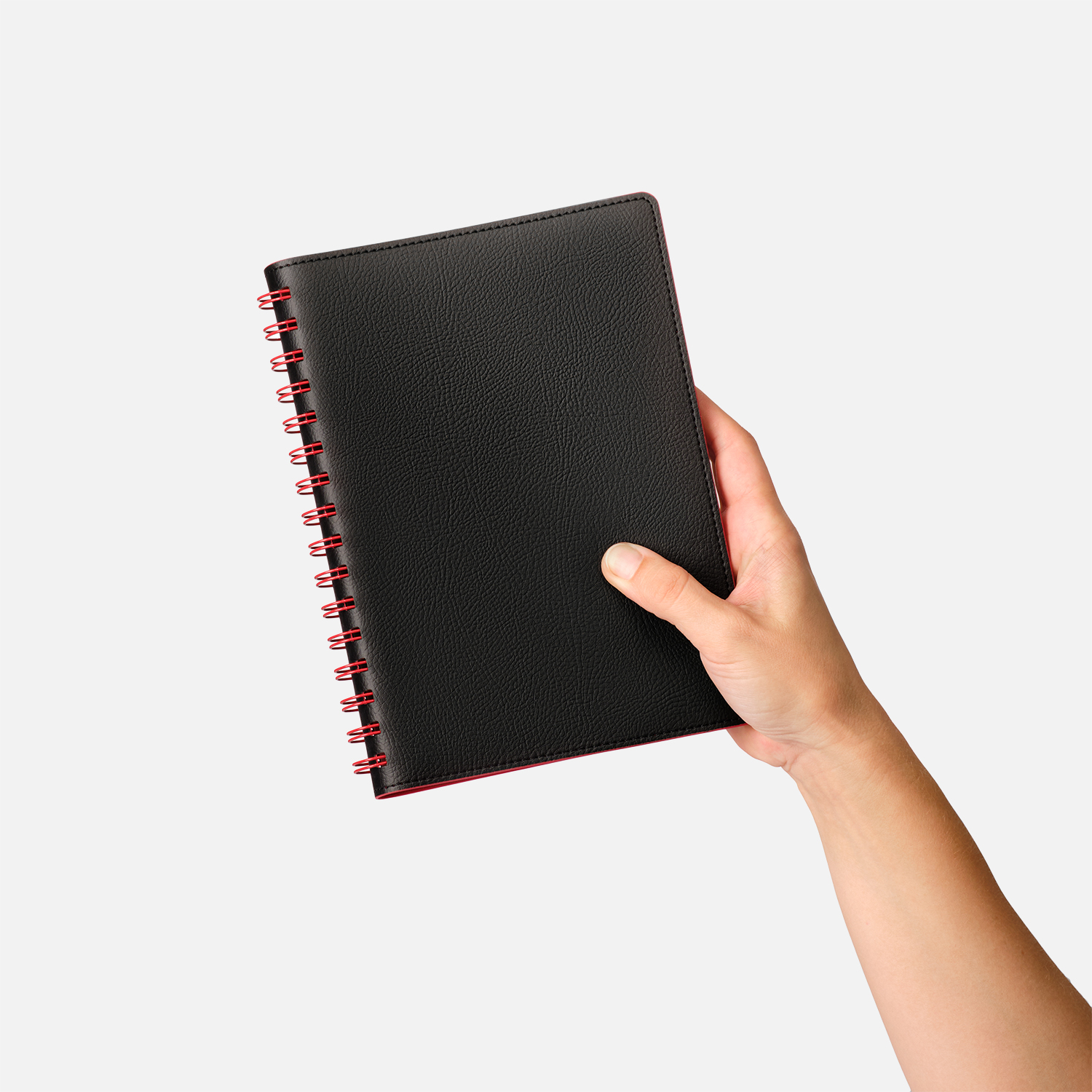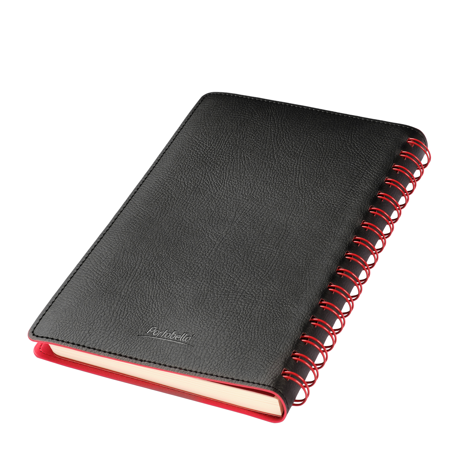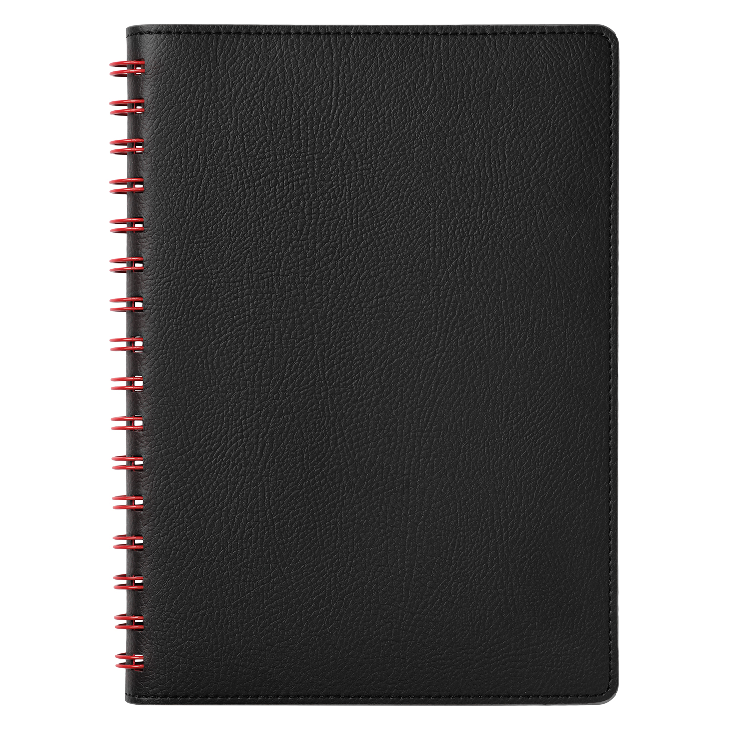 Недатированный ежедневник в гибкой обложке со скругленными уголками из искусственной кожи. Обложка выполнена из сшивки двух материалов. Внешний материал обложки – матовый, с некрупным рельефом под натуральную кожу. Цвет – черный, насыщенный, динамичный, однородный. Внутренний материал обложки – Latte – бархатистый, мелкозернистый, ярко-красного цвета. По периметру обложки выполнена прошивка в тон. Форзац и нахзац контрастные, ярко-красного цвета. Теплые кремовые страницы со скругленными уголками выполнены из гладкого шелковистого офсета. Срез матовый, в тон страниц. Ежедневник надежно скреплен полускрытой пружиной в цвет внутреннего материала обложки. Изделие комплектуется вкладышем с цветными стикерами и индивидуальной упаковкой.