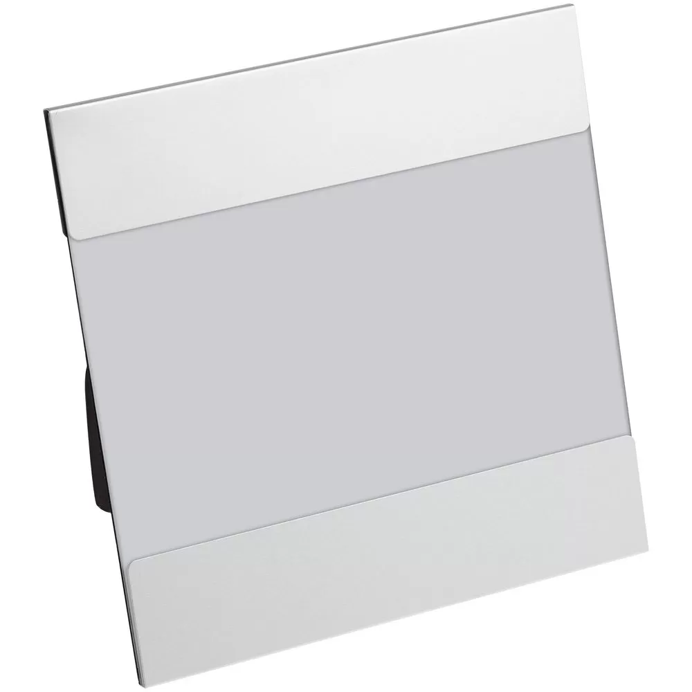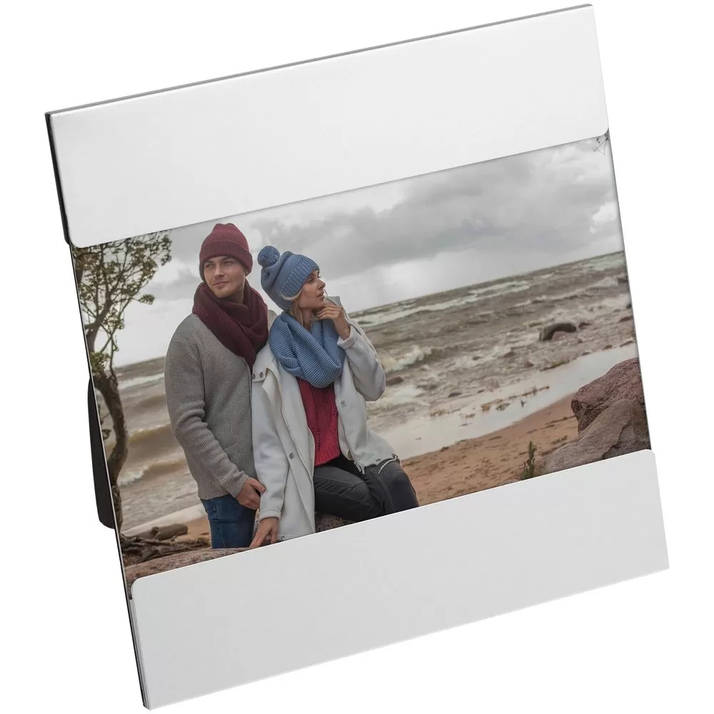 Подходит для фото размером 9х13 см, часть фотографии закрыта сверху и снизу металлической рамкой.