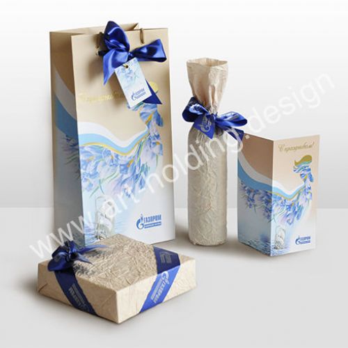 Специально для компании "Газпром космические системы" креативная группа "Арт-Холдинг" представила подарочный набор к Международному женскому дню под названием "Бегущая по волнам". В подарочный набор вошли: шоколадные конфеты, шампанское, дизайнерский брендированный пакет и поздравительная открытка.