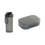 рюкзак - полиэстер, 300D; термостакан - пластик, нержавеющая сталь, покрытие софт-тач; аккумулятор - пластик, покрытие, имитирующее камень; колонка - пластик, покрытие софт-тач; полиэстер