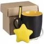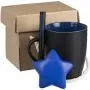 ежедневник - искусственная кожа; чайная пара - фарфор, покрытие соф-тач; ручка - алюминий; коробка - микрогофрокартон