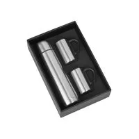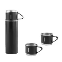 Набор подарочный Алтай: термос, 3 кружки, покрытие пудра, черный