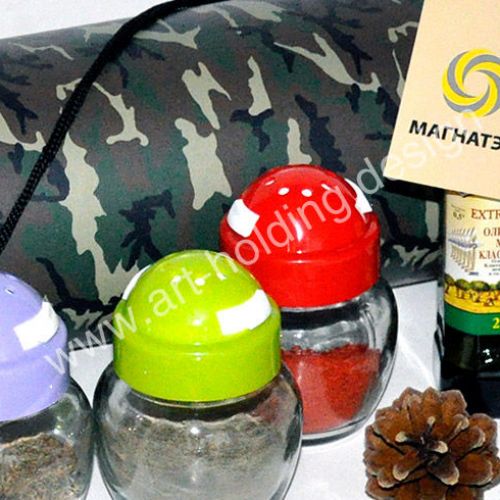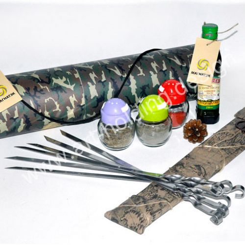 Специально для компании «Магнатэк» креативная группа «Арт-Холдинг» представила подарочный набор «Поход на шашлыки». В набор входят шампуры, набор специй в банках, бутылочка оливкового масла - всё, что может пригодиться при приготовлении шашлыка. Набор упакован в подарочный тканевый тубус с удобной ручкой.