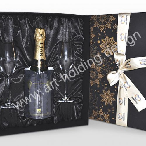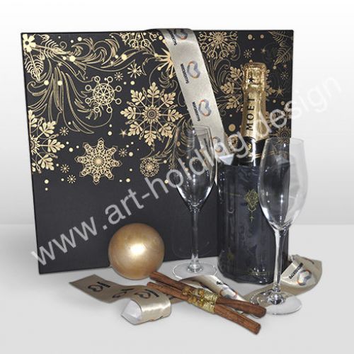 «Пусть бокалы звенят, пусть искрится вино!» — слова из новогоднего тоста вдохновили «Арт-Холдинг» на создание этой концепции подарка для компании «Мосэлектрощит». Даже бутылка шампанского в подарке оформлена в нарядную рубашку! Правда, из специального изолирующего материала, который позволит сохранить температуру напитку, чтобы по этому поводу не пришлось переживать во время праздничной встречи. А благодаря еще более нарядной коробке с брендированной лентой и дизайнерскому пакету с логотипом компании, подарок идеально подходит для торжественного поздравления деловых партнеров с Новым Годом! Состав подарка: шампанское, охлаждающая рубашка-насадка на бутылку, бокалы, палочки корицы, декор.