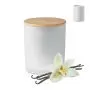 свеча - воск, кокосовый; парафин; крышка - дерево; подсвечник - стекло; фитиль - дерево