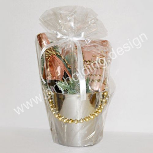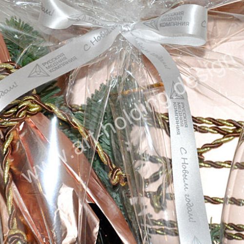 Специально для «Русской медной компании» команда «Арт-Холдинг» подготовила новогодний подарок в стильном ведерке для охлаждения шампанского. Такое дизайнерское решение отражает специфику деятельности металлургической компании, поскольку ведерко — стальное. Состав подарка: бутылка шампанского, шоколадные конфеты; бокалы для шампанского; новогодний декор; брендированные ленты; ведерко (сталь).