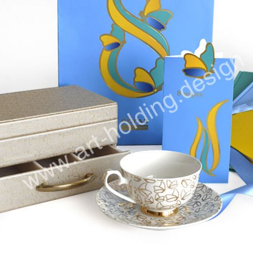 Основным мотивом дизайна концепции послужила бабочка, как олицетворение красоты. Этот символ особым образом «скрыт» в центральном элементе дизайна - цифре «восемь». Из бабочек составлен и паттерн, который используется в качестве дополнительного элемента в оформлении. Концепция выполнена в ярких фирменных цветах компании, выгодно подчеркивающих общее «весеннее» настроение подарка. В состав набора вошли: три подарочных издания книг (быстрые рецепты, о воспитании детей и главные правила сочетания цветов), шкатулка из эко-кожи с золотым тиснением, задеколированная чайная пара, подарочная дизайнерская открытка и подарочный дизайнерский пакет, выполненные в общем стиле концепции.